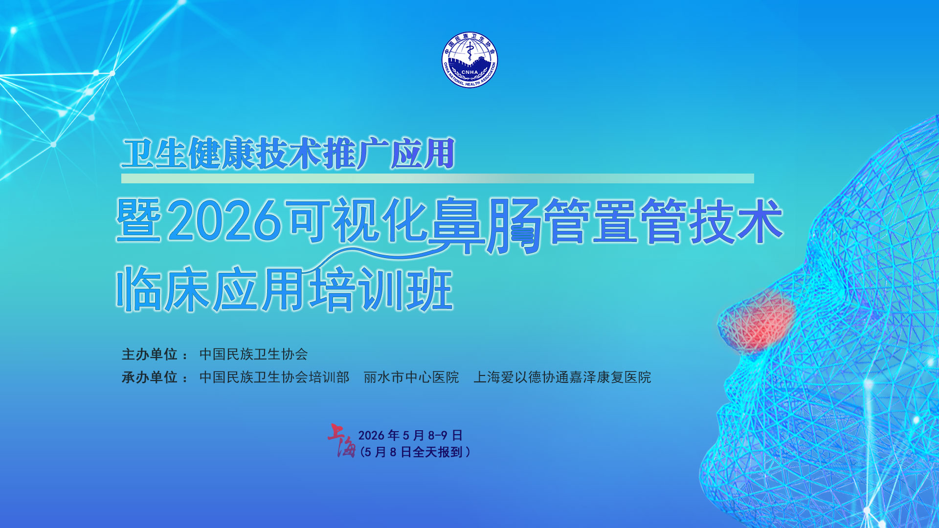 中国民族卫生协会是经国务院批准、民政部登记、国家卫生健康委员会主管的国家一级协会,成立于2005年5月18日。长期以来,临床上留置鼻肠管的技术以床旁徒手盲插、超声引导下留置、胃镜引导以及磁导航定位留置等,这些技术均存在局限性。临床使用方便性降低,操作复杂性明显增加,普及和推广有一定难度。本项可视鼻肠管留置技术是将专门研发的床旁便携式微型可视化管芯替代原有的引导钢丝放置在鼻肠管肠管,不仅有原引导钢丝的支撑作用,而且增加方向指导功能用来引导鼻肠管置入的方向,增加的可视功能可将留置鼻肠管的实时影像传输到显示屏,从而实现鼻肠管的置管过程全程可控、可视,安全高效。为更好地推广、传播这一“绿色”诊治新技术,造福广大患者,我会拟于2026年5月8-9日在上海爱以德协通嘉泽康复医院举办“卫生健康技术推广应用暨2026可视化鼻肠管置管技术临床应用培训班”,本次会议拟邀请多名业界知名专家授课,着重介绍一次性使用可视化鼻肠管的临床应用和可视化置管技术教学演示。