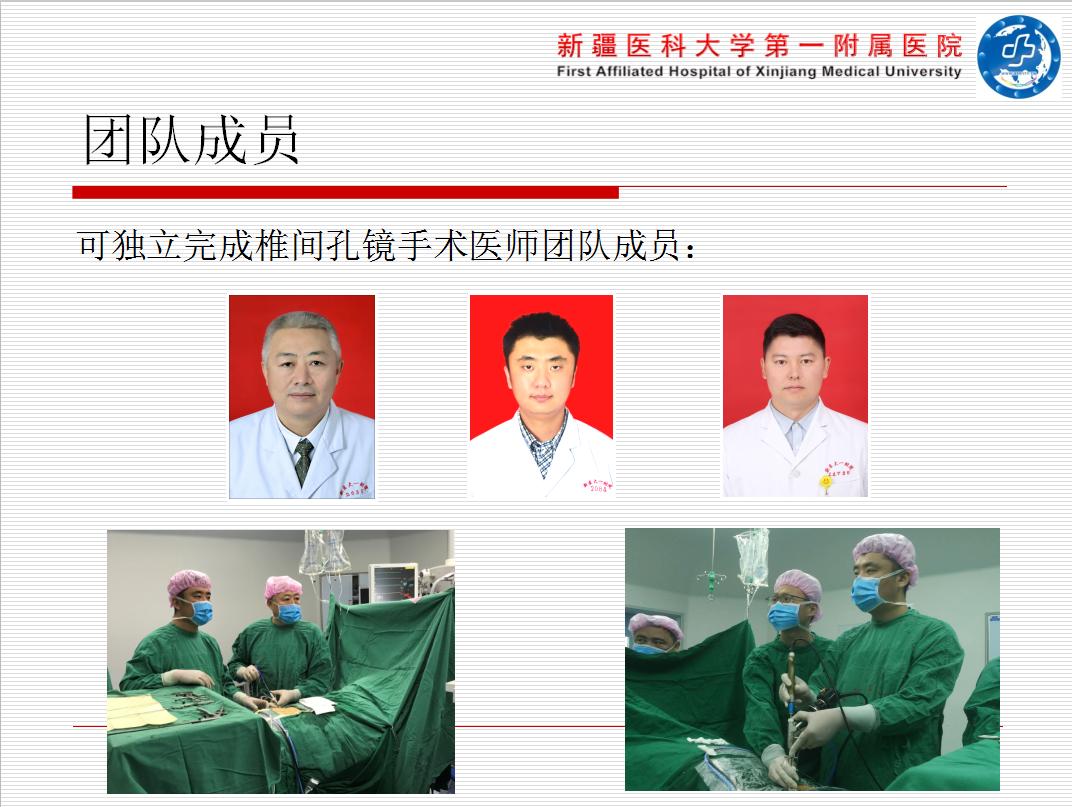 新疆医科大学第一附属医院骨科中心是自治区重点专科,中心含关节、脊柱、骨肿瘤、运动损伤、显微修复外科、创伤、小儿骨科专业,年手术量超过8000台次,中心主任曹力教授。我院于2013年至今行“经椎间孔内窥镜手术”共计600余台,且手术人次在逐月递增,目前平均达到每月30台次。科室团队人员均拥有脊柱内镜培训证书,职称资质均在2年主治以上,人员梯队分布合理,脊柱内镜、磨钻动力设备齐全,手术室可实现手术会场转播,学习交流便利。